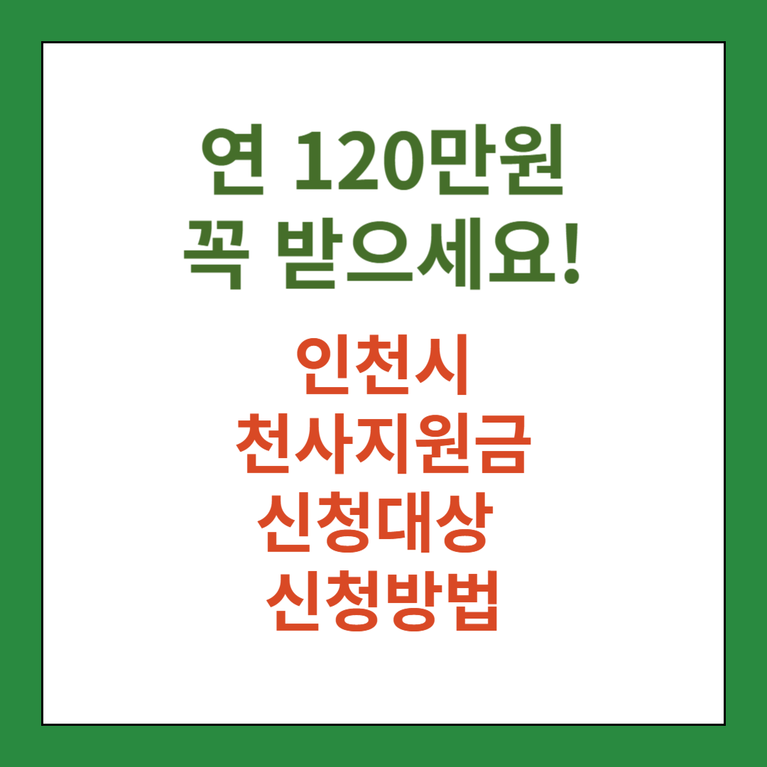 천사지원금 지급일은 신청한 다음 달 말에 인천e음 포인트로 연간 120만 원, 7년간 총 840만 원 지급됩니다. 지급받은 인천e음 포인트는 이천 e음 가맹점에서 사용할 수 있습니다.