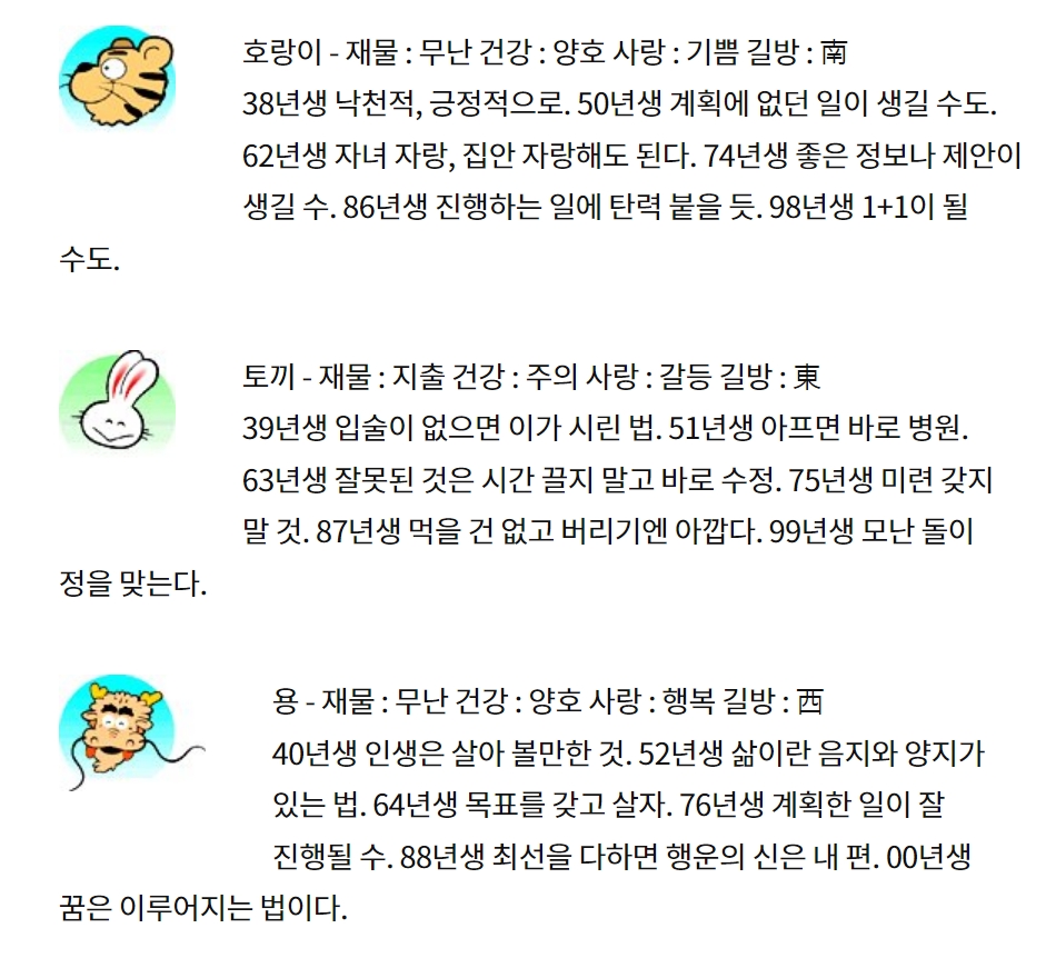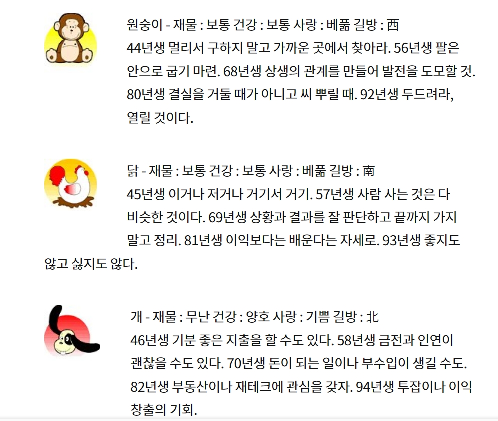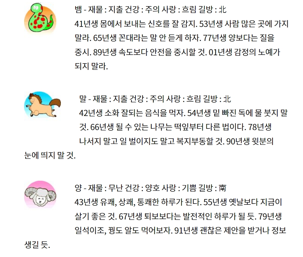 중앙일보에서 띠별로 조규문 오늘의 운세를 보실 수 있습니다. 매일 자정에 업데이트가 되니 시간 될 때 방문해서 띠별 운세 보는 것도 좋을 것 같습니다.