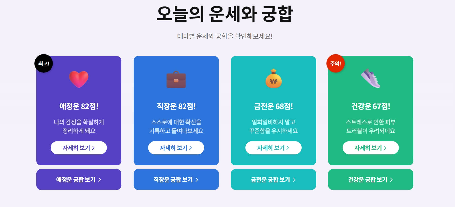 새해가 되면 총운세만 보는데, 요즘은 간단하고 빠르게 오늘의 운세를 볼 수 있습니다.
